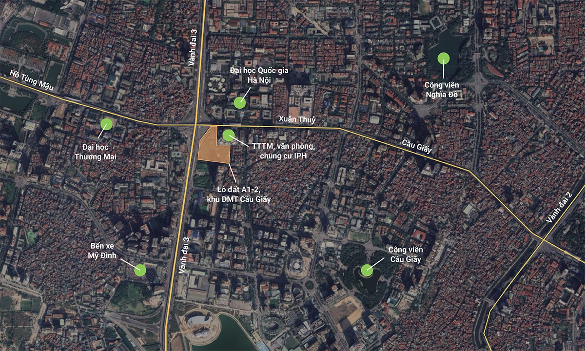 Dự án nằm tại vị trí đắc địa ở quận Cầu Giấy khi tiếp giáp ba mặt đường Xuân Thuỷ, Phạm Hùng, Trần Quốc Vượng. Khu đất rộng khoảng 2,5 ha này cũng ngay cạnh tổ hợp trung tâm thương mại, văn phòng và căn hộ cao cấp IPH. Theo quy hoạch, dự án sẽ được xây dựng 5 toà tháp cao 38 – 45 tầng.